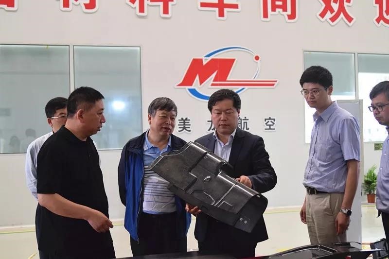 在美龙航空生产现场,陶志辉一行考察了公司生产能力、技术水平、产业板块发展以及双方合作项目进度等,特别对于新材料的各项技术优势做了深入地了解。