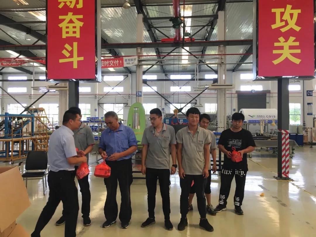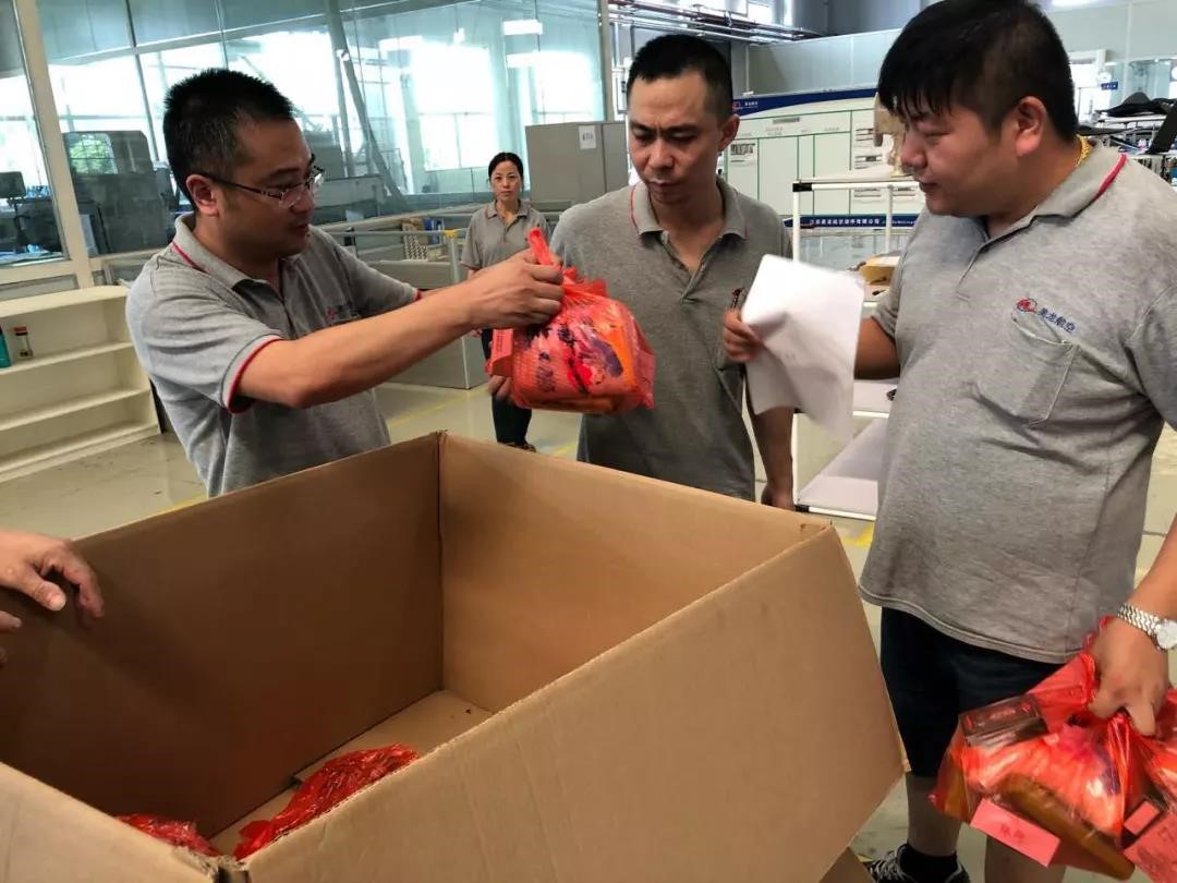 公司负责人高度重视,并指示相关部门必须做好一线员工后勤保障工作,确保员工身心健康,安全生产。为此,公司工会开展“送清凉到现场”活动,组织集中采购了一批防暑降温物品,包括常用防暑药品及洗化用品等。8月8日下午,工会主席黄建峰等公司领导,至生产现场为员工发放了防暑降温物品。