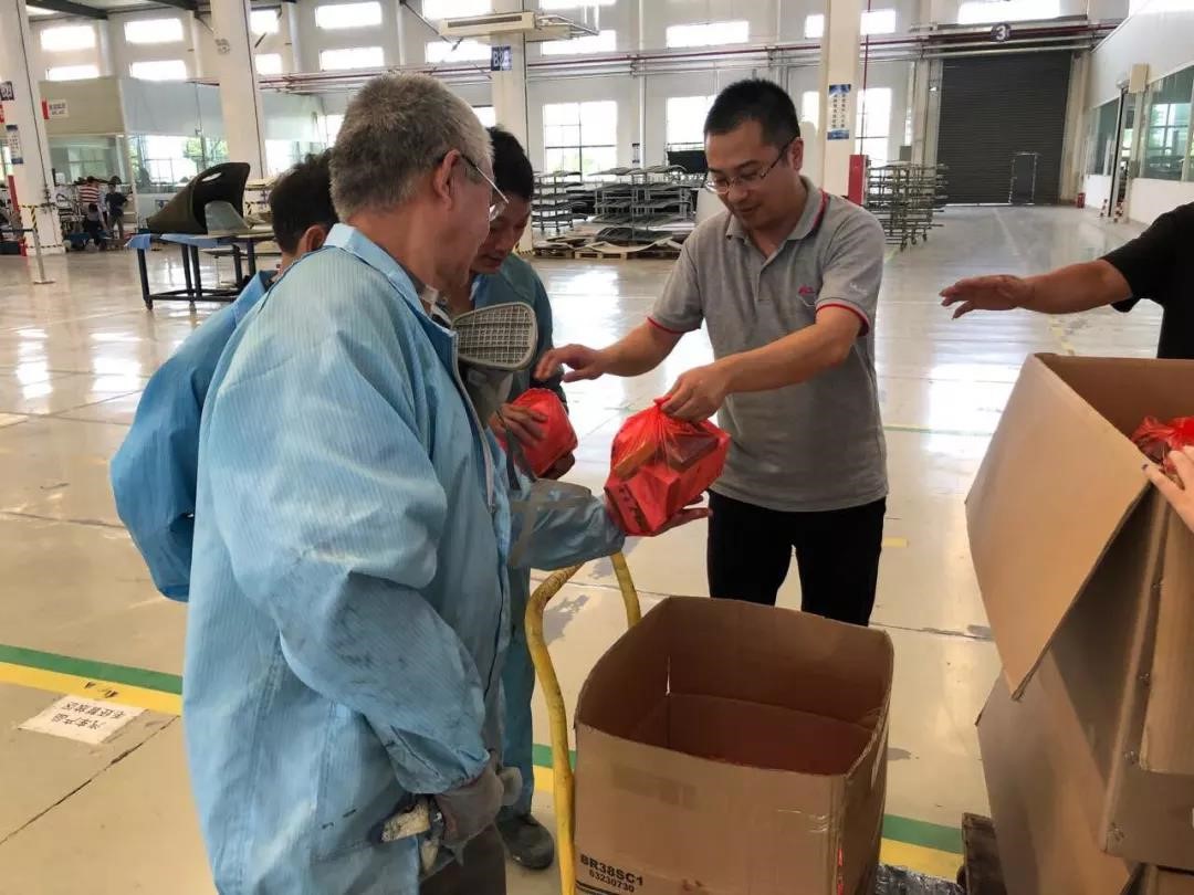 公司负责人高度重视,并指示相关部门必须做好一线员工后勤保障工作,确保员工身心健康,安全生产。为此,公司工会开展“送清凉到现场”活动,组织集中采购了一批防暑降温物品,包括常用防暑药品及洗化用品等。8月8日下午,工会主席黄建峰等公司领导,至生产现场为员工发放了防暑降温物品。