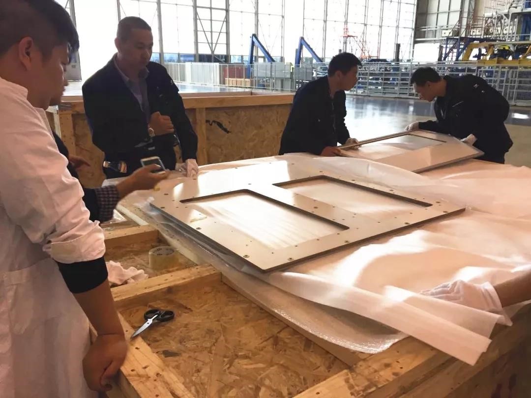 11月5日—9日,在中国商用飞机有限责任公司浦东基地,美龙航空顺利通过了10103架次C919货舱装饰现场验收交付工作。