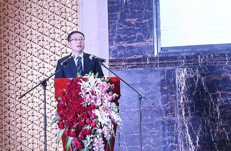 董事长带领集团高管致祝酒词,他向在场的嘉宾、员工送上了美好的新年祝福,向远在各分公司、驻地坚持奋战的美龙人致以慰问,向长期支持集团发展的员工家属们表示谢意。